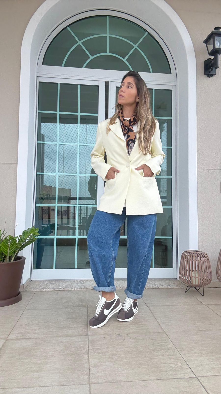 Possui fechamento frontal com um botão único e bolsos. Essa peça é versátil, podendo ser usada tanto em um look mais casual quanto em um visual mais formal, sempre na pegada cool da Bemditas.